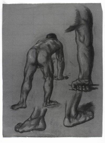 nu de dos penché ( back view of bending nude) - study for arts of the stone deco ration for the Court of the Trades