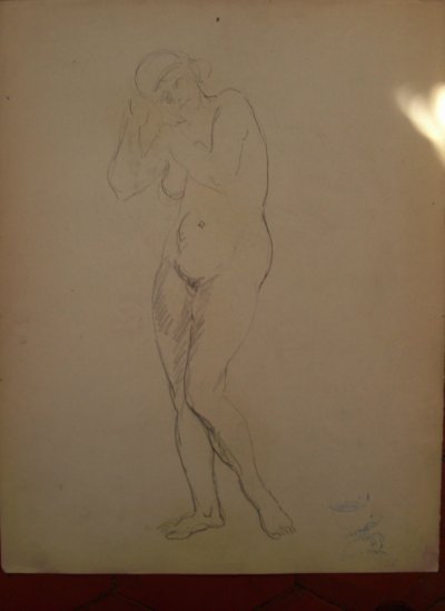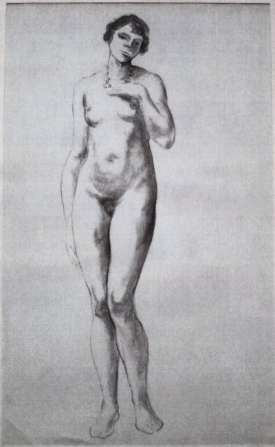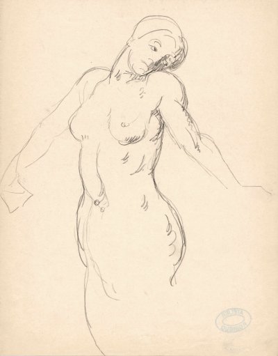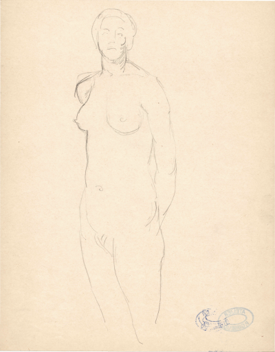 nu de face ( full-face view of standing nude )- study for arts of the stone decoration for the Court of the Trades